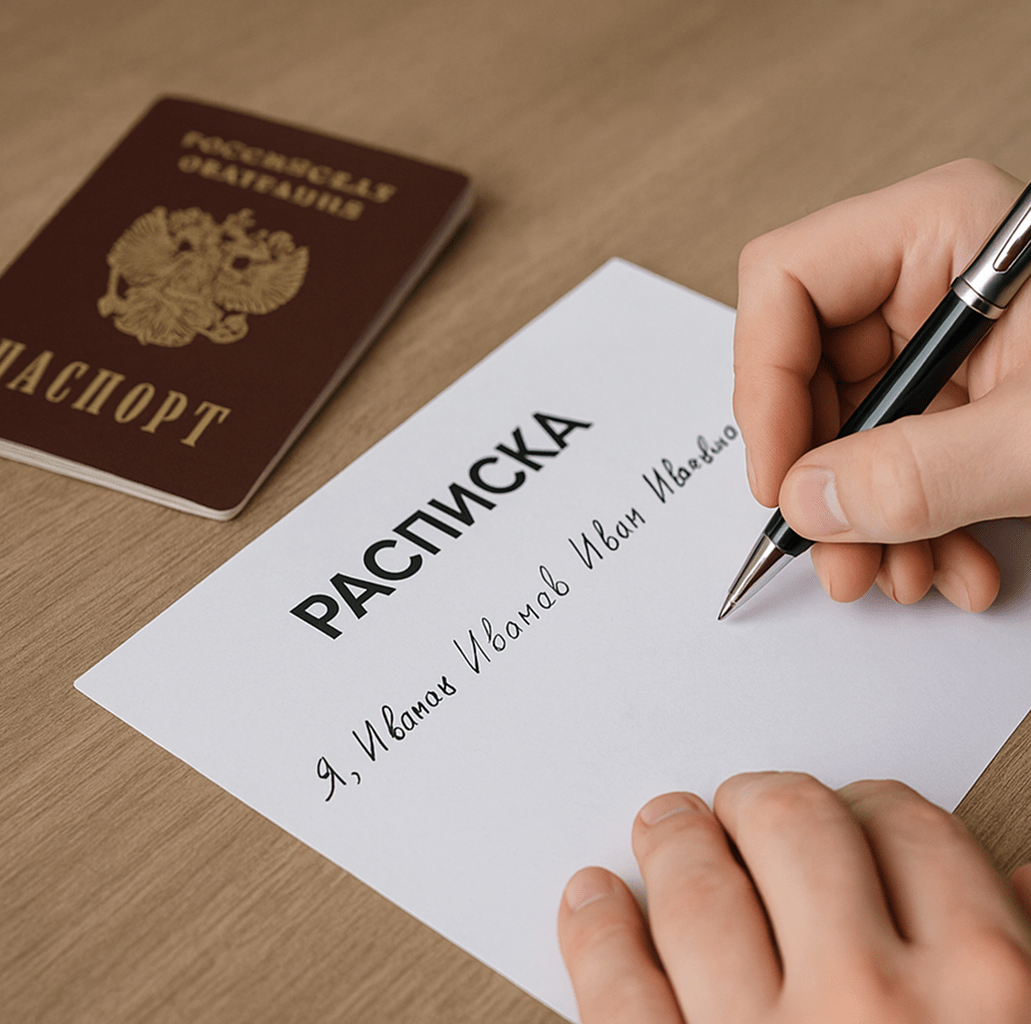 ✅ Подписывать расписку собственноручно, не печатать на компьютере.