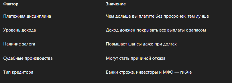 📋 Что реально влияет на решение